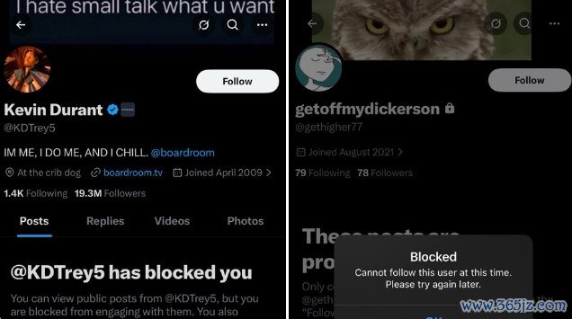有网友表示,杜兰特的大号将他拉黑了,而这个他不认识的疑似小号也将他拉黑了,所以他确定这个账号就是属于杜兰特。
