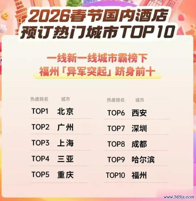 在国内酒店预订市场中,北京、广州、上海、三亚、重庆凭借强大的旅游吸引力和完善的住宿设施,跻身春节酒店预订热门城市前五名。这些城市的酒店市场供需两旺,高星酒店、特色民宿、主题酒店等各类住宿产品百花齐放,满足了不同游客的住宿需求,同时也反映出春节旅行市场的消费升级趋势。